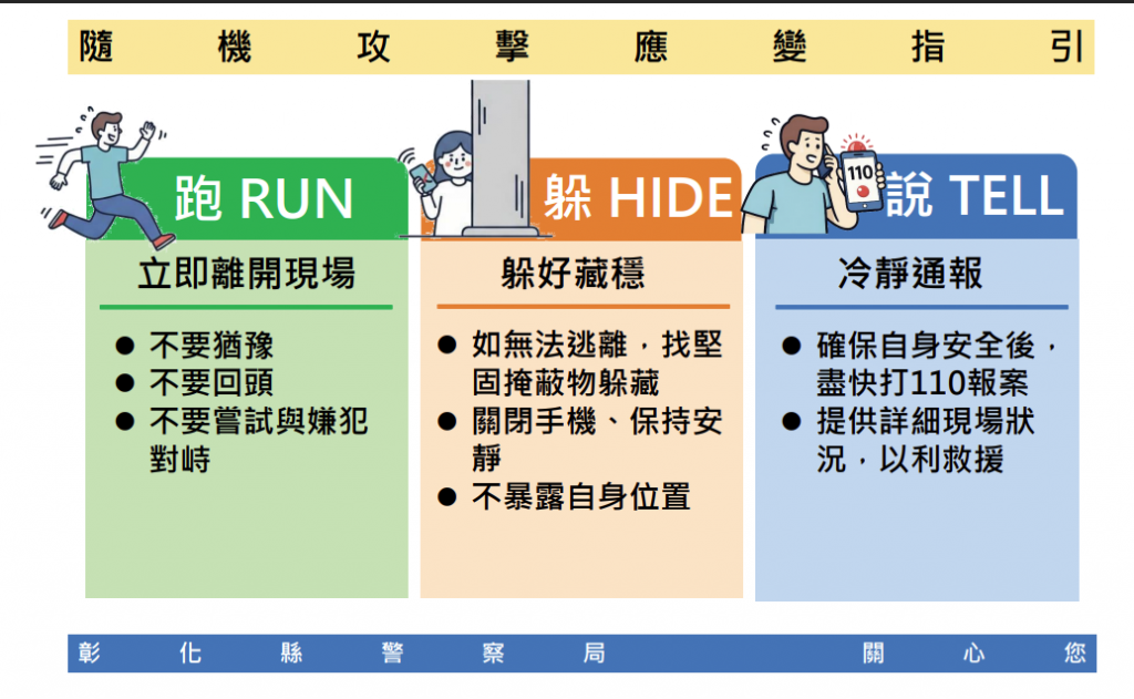 鑑於114年12月19日社會發生重大隨機攻擊事件,為預防不當仿效情事以及保護學校教職員工生之安全,本縣警察局研擬公共場所遭遇隨機攻擊之自我保護指引,為維護校園公共安全之相關工作,以提升社會整體安全意識。